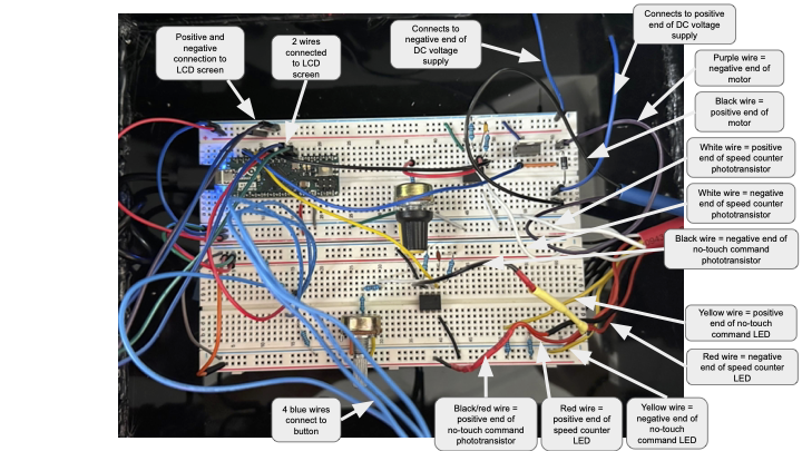 This subsystem uses the LED–phototransistor + comparator logic described above as a gesture-based button. When the user blocks the light path, the phototransistor changes state and the microcontroller interprets it as a start/stop command.